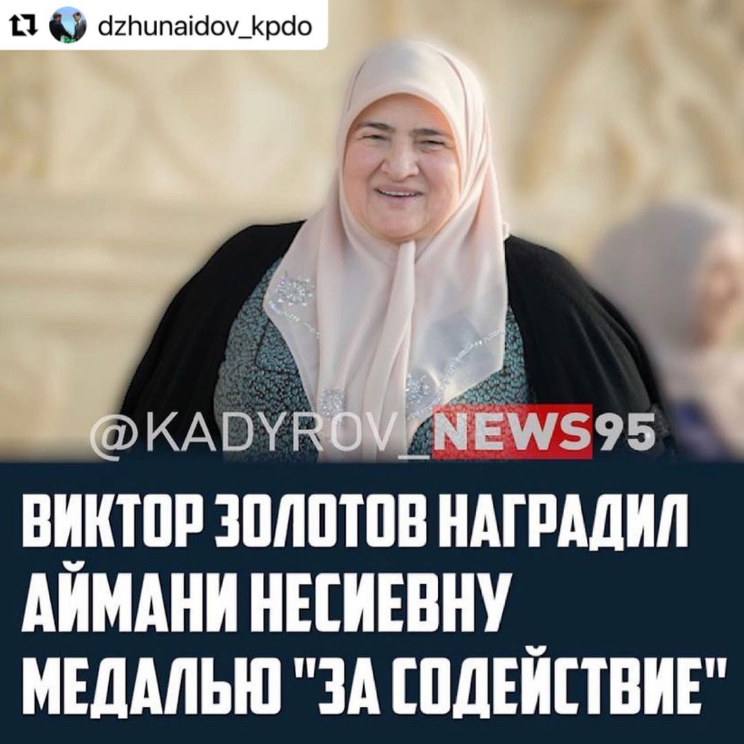 Решением директора ФСВНГ - Главнокомандующего войсками НГ Виктора Золотова, Президент Регионального Общественного Фонда им. Первого Президента ЧР, Героя России Ахмата-Хаджи Кадырова (Дала г1азот къобал дойла цуьнан), всеми нами уважаемая Аймани Несиевна награждена федеральной службой национальной гвардии РФ медалью "За содействие". Кроме того, коллектив благотворительной организации удостоен Почетной грамотой от силового ведомства.