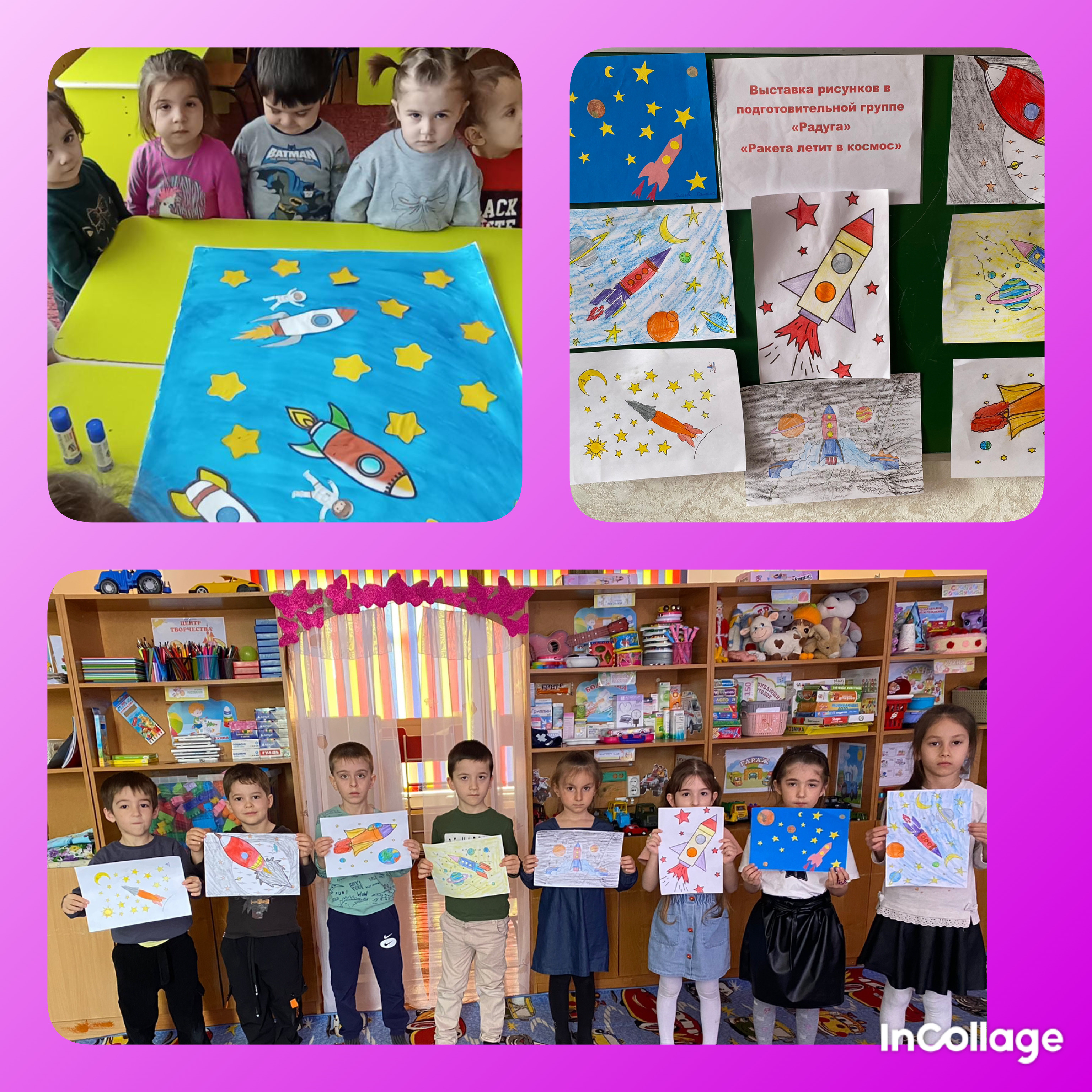 Сегодня наши ребята, рисовали рисунки, выполняли аппликацию посвященную Дню Космонавтики. Воспитатели провели с детьми беседу, рассказывая об этом великом событии в истории человечества.
