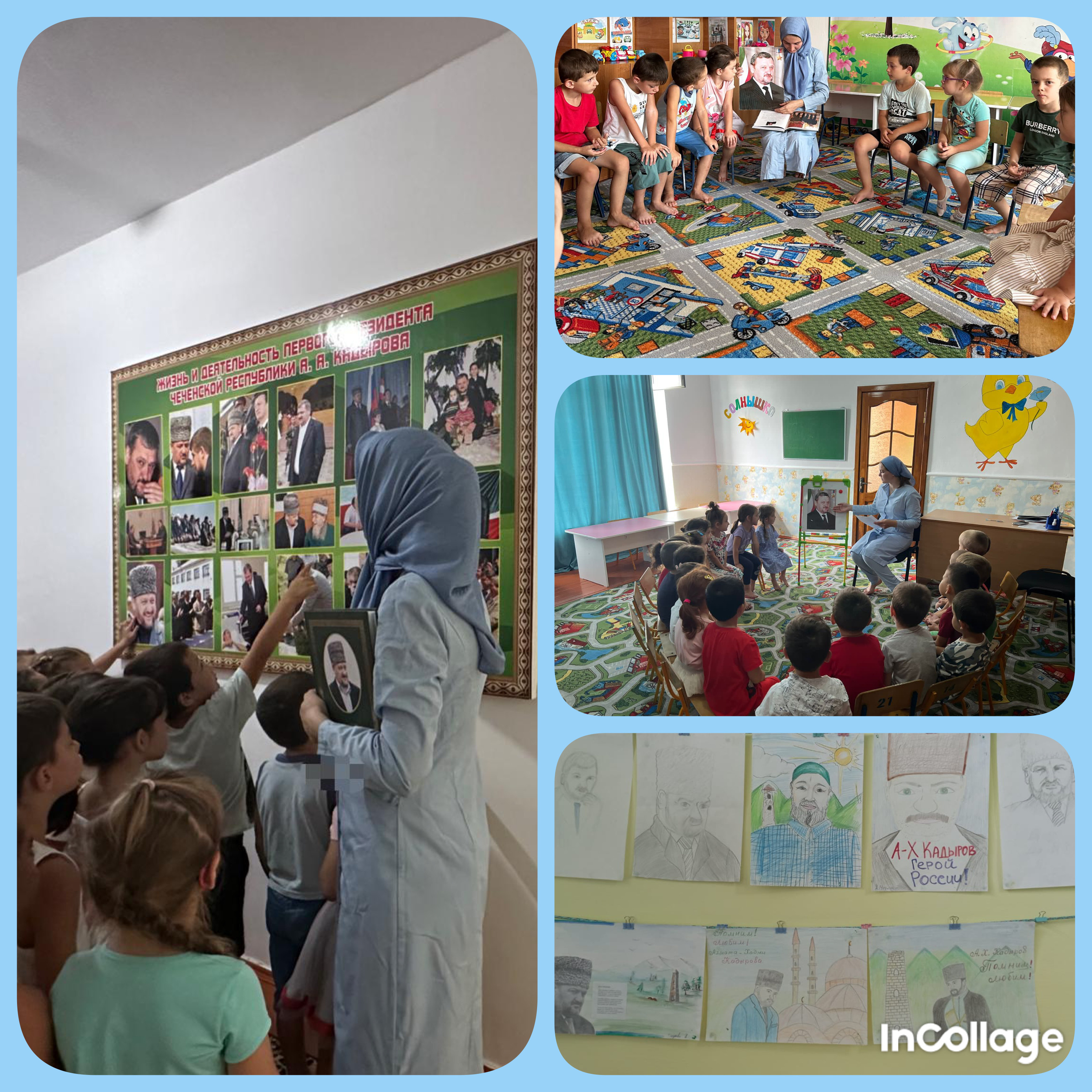 23.08.2023В целях решения задач гражданского, патриотического воспитания детей, формирования у них гордости за достижения своей страны, рассказать о неоценимых заслугах Первого президента ЧР, Героя России Ахмата- Хаджи Кадырова и в соответствии с планом работы на ЛОП 2023 года в МБДОУ «Детский сад «Тамара» с. Пролетарское Грозненского муниципального района» были проведены мероприятия, посвященные Дню рождения Первого Президента Чеченской Республики А-Х. Кадырова. С 16-го по 21 августа во всех группах в доступной форме проведены беседы на тему: «Мой первый президент». в старшей группе "Пчелки" прошел утренник. Дети рассказывали стихотворения, исполнили песню, посвященныю Ахмат-Хаджи Кадырову. Во время утренника детям рассказали о том, что именно благодаря Первому президенту ЧР Ахмату-Хаджи Кадырову, который искренне любил свой народ, Чеченская Республика вернулась к мирной жизни.