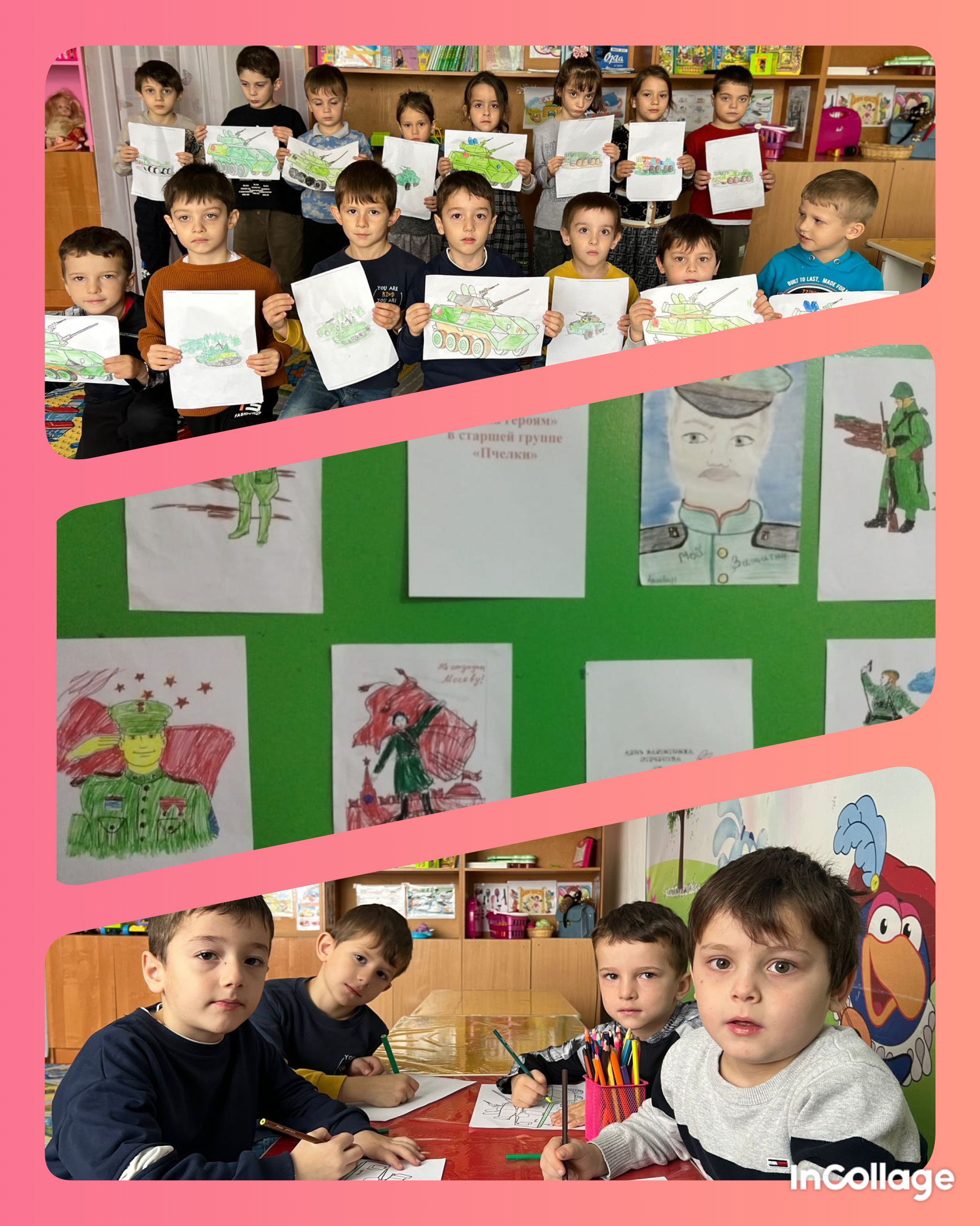 05.12.2022 в старшей и подготовительной группах прошли выставки рисунков «Военная техника», «Слава Героям». Дети рисовали военную технику, военных, солдат, выражали свое отношение к этому празднику в своих рисунках. Рисунки получились интересными. Каждый рисунок был уникален и индивидуален, но все они отображали наших доблестных героев.